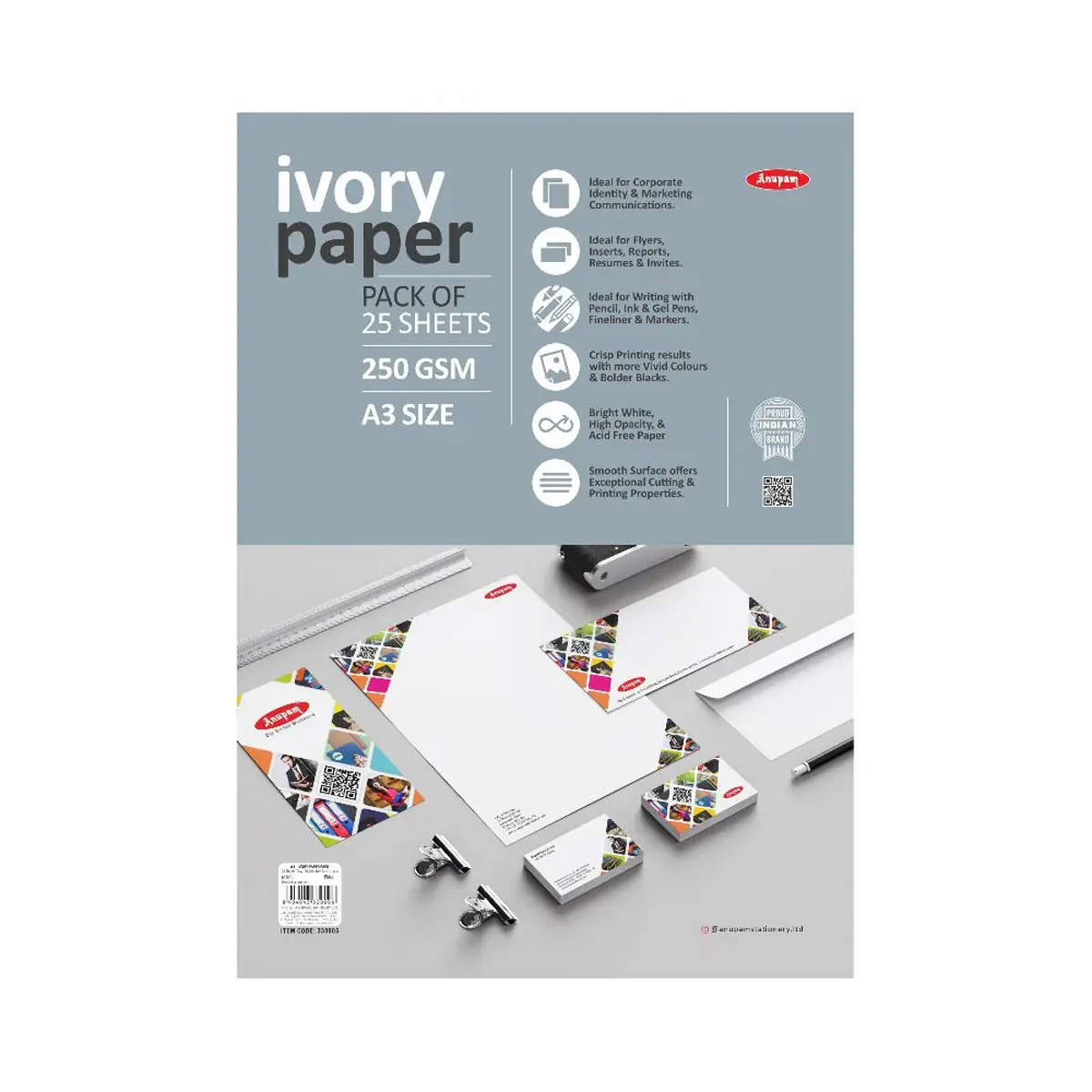 The Anupam Ivory Paper A3 250 GSM is a premium quality heavy paper designed for professional printing, stationery, invitations and craft projects. The elegant ivory tone gives documents a refined and professional appearance, making it ideal for certificates, presentations and creative designs.