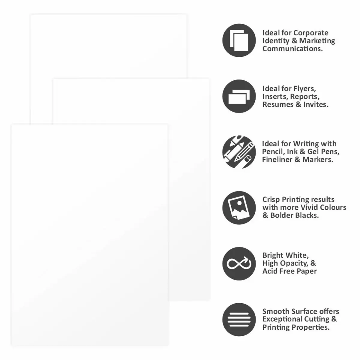 • Smooth surface for clear printing and writing