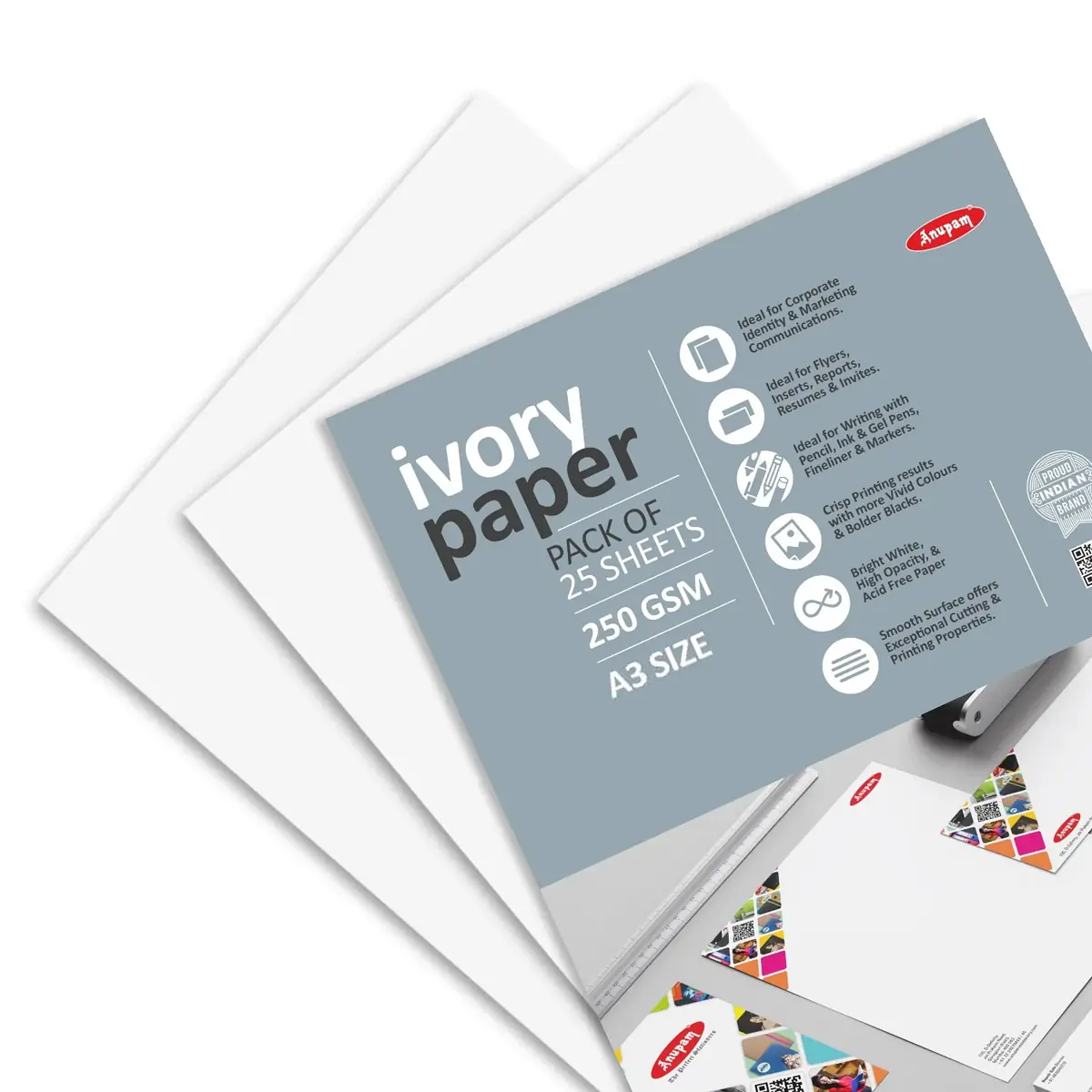 Anupam Ivory Paper A3 250 GSM 25 Sheets – Premium Printing Paper for Invitations, Certificates & Craft
