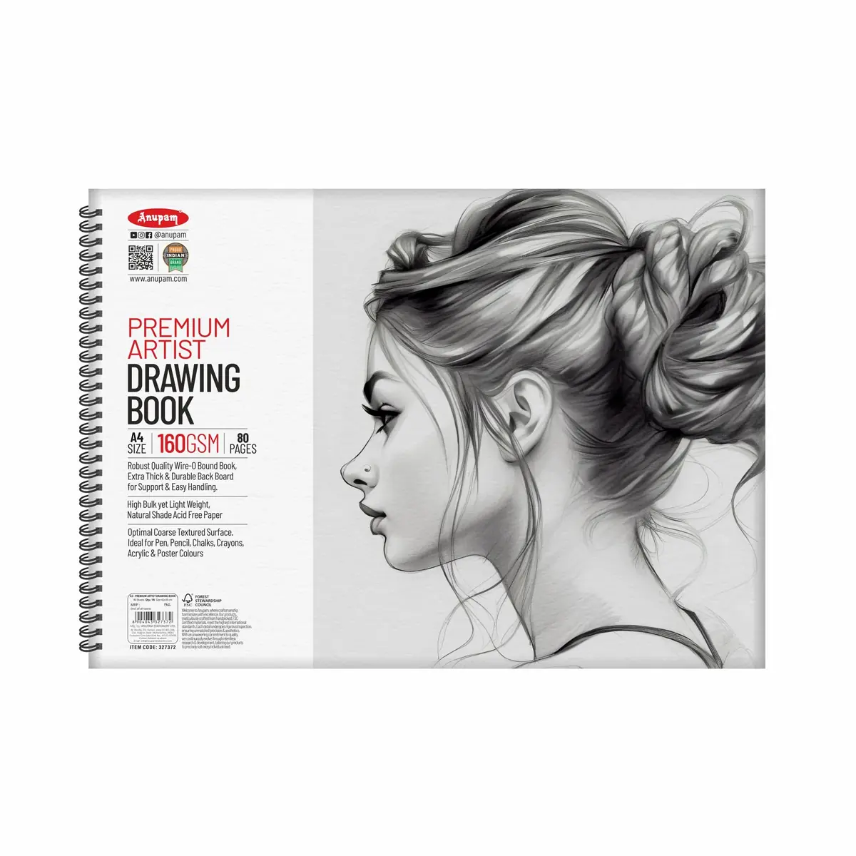 Anupam Premium Artist Drawing Book A4 160 GSM – 80 Pages Wire Bound Sketch & Drawing Paper