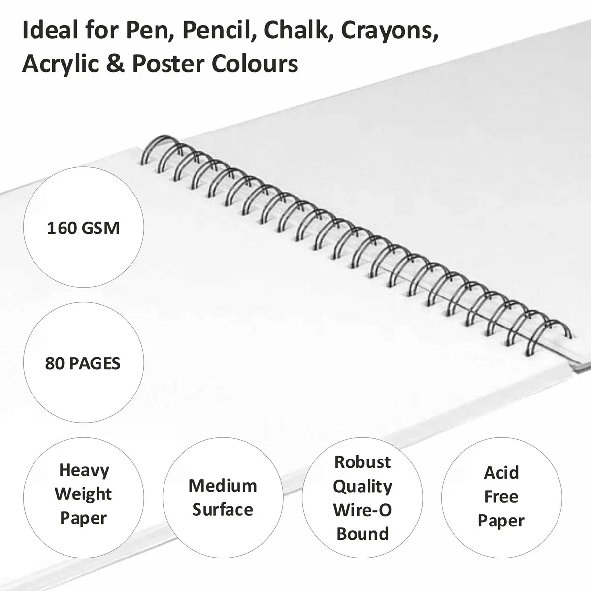 The wire-bound design allows the book to open flat for comfortable drawing and easy page turning. With 80 pages of acid-free natural shade paper, this drawing book ensures long-lasting artwork while maintaining excellent surface quality for detailed sketches and illustrations.