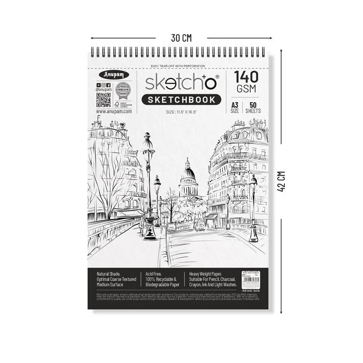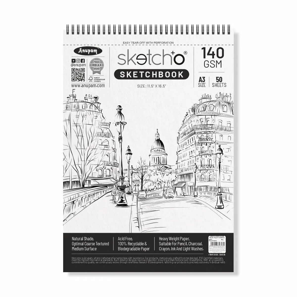 The Anupam Sketcho Sketchbook A3 140 GSM is designed for artists, students and illustrators who need a spacious sketching surface for creative expression. With 50 sheets of premium drawing paper, this sketchbook provides ample space for sketching, illustration and artistic practice.
