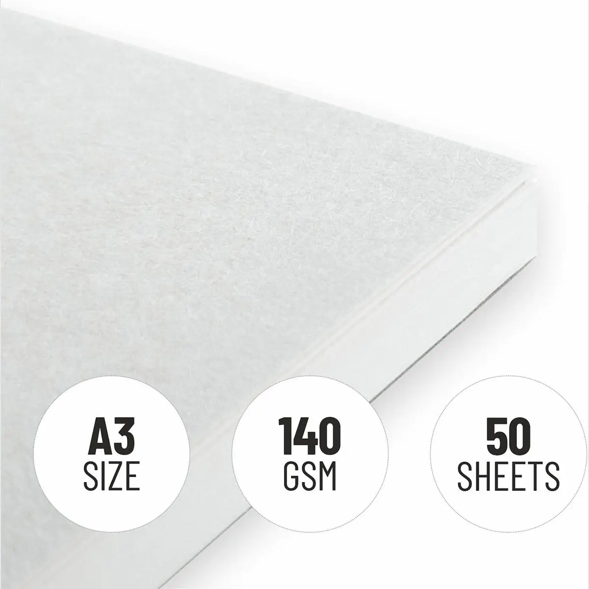 The 140 GSM heavyweight drawing paper offers durability and flexibility suitable for various dry media techniques. Its medium coarse textured surface allows pencils, charcoal and crayons to grip the paper effectively, helping artists achieve smoother shading and detailed strokes.
