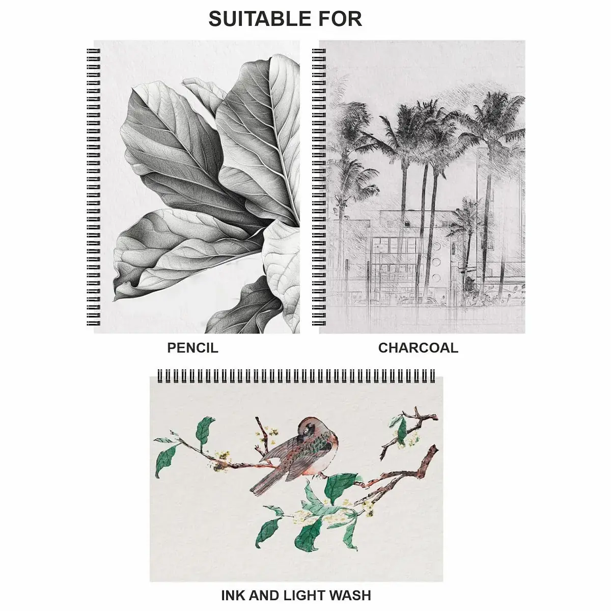 The A3 large format sketchbook provides an expansive working area ideal for detailed drawings, concept art and creative artwork. The spiral binding allows the pages to lie flat for comfortable drawing and easy page turning.