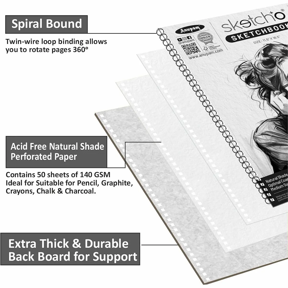 Anupam Sketcho Sketchbook – A3 Size 140 GSM | 50 Sheets | Artist Drawing Sketch Book