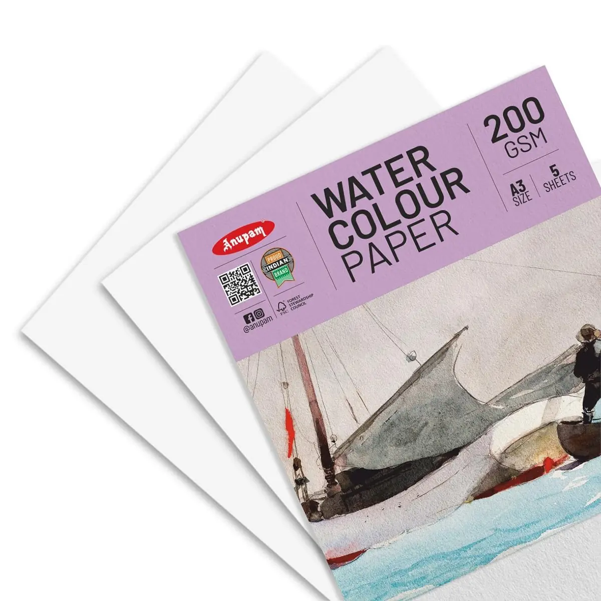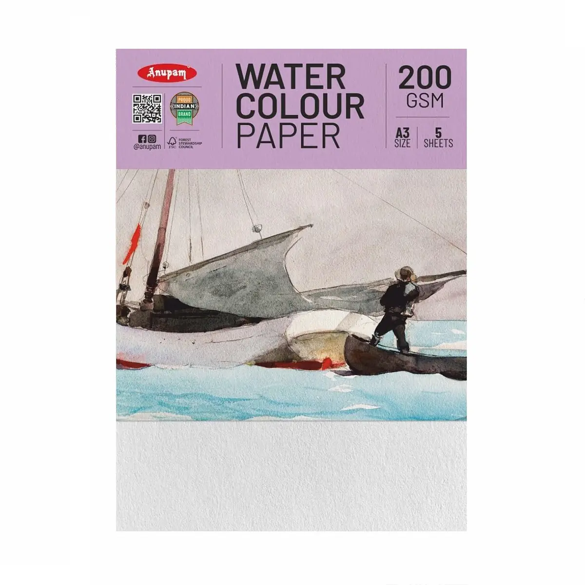 The Anupam Water Colour Paper A3 200 GSM is designed for artists, students and hobby painters who require reliable paper for watercolor and mixed media artwork. The pack contains 5 sheets of A3 size watercolor paper that provide ample space for detailed paintings and artistic practice.