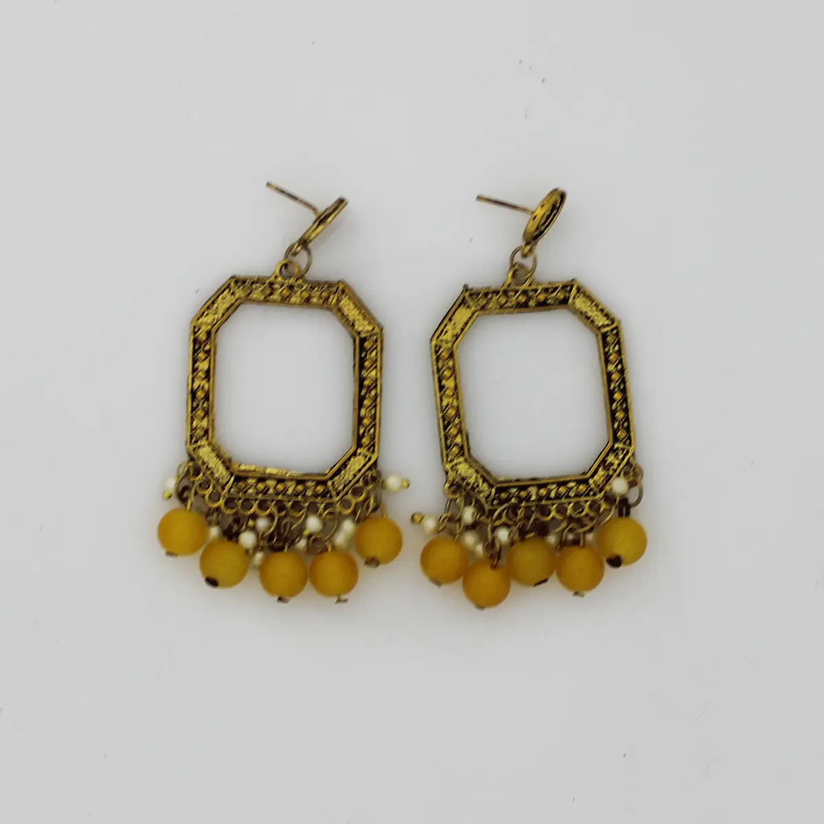 Artificial Gold Octagon Jhumka Bezel With Yellow Pearls - 1.3x1.6 Inch Pair for Resin Jewellery Making | JustKraft