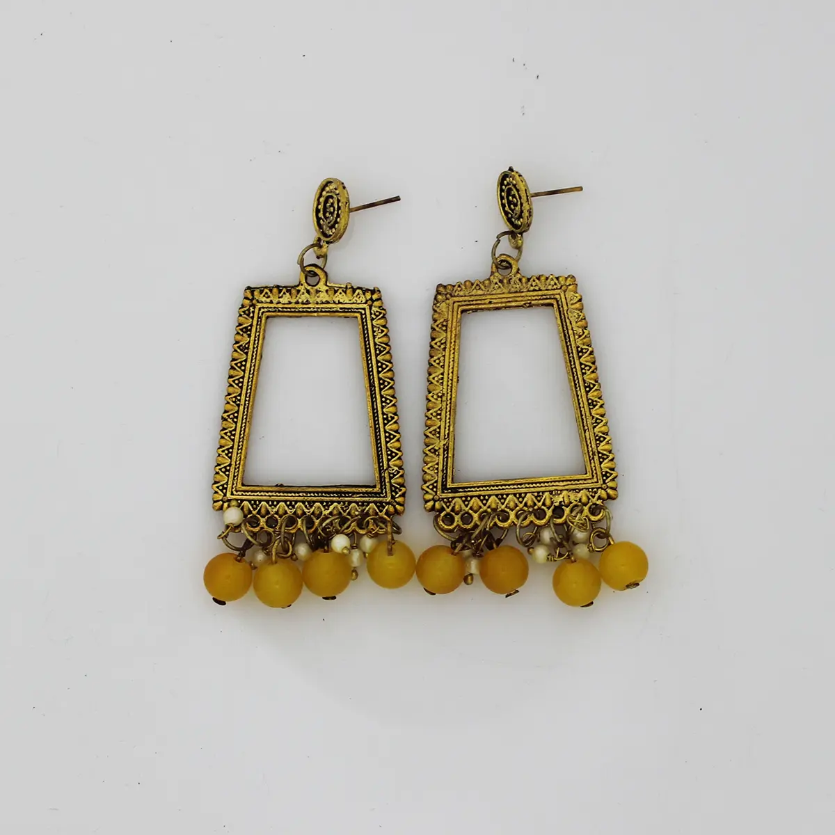 Artificial Gold Rectangle Jhumka Bezel With Yellow Pearls - 1.3x1.8 Inch Pair for Resin Jewellery Making | JustKraft