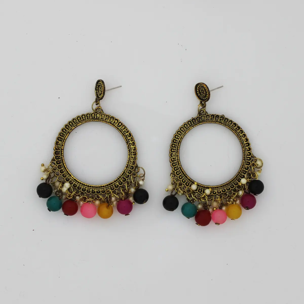 Artificial Gold Round Jhumka Bezel With Multicolor Pearls - 1.8 Inch Pair for Resin Jewellery Making | JustKraft