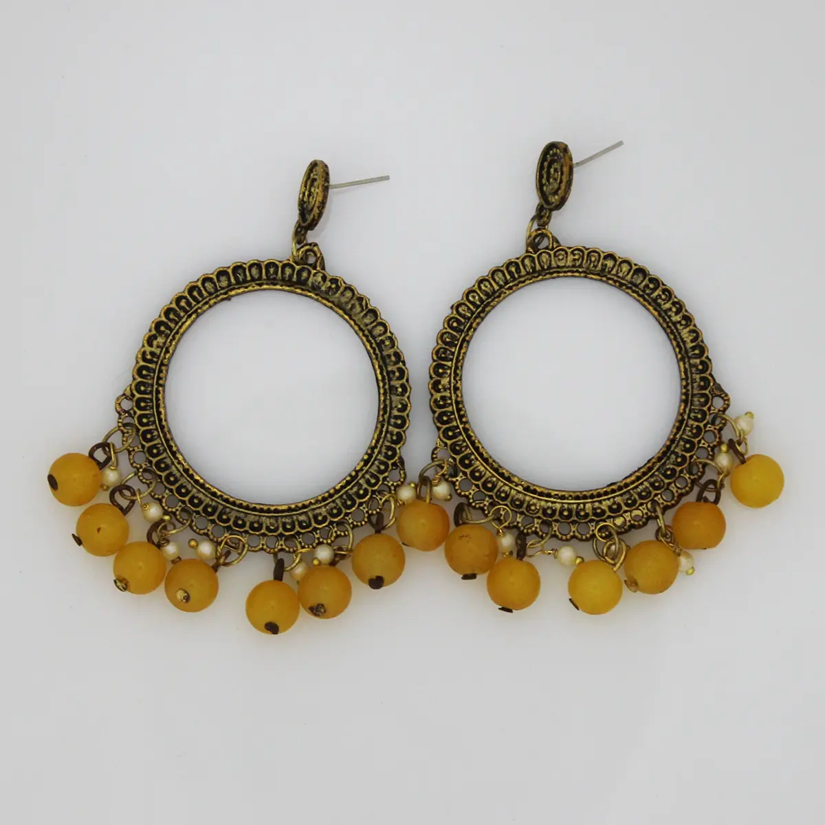 Artificial Gold Round Jhumka Bezel With Yellow Pearls - 1.8 Inch Pair for Resin Jewellery Making | JustKraft