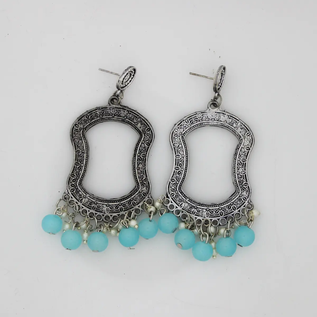 Artificial Silver Curved Jhumka Bezel With Sky Blue Pearls - 1.4x2 Inch Pair for Resin Jewellery Making | JustKraft