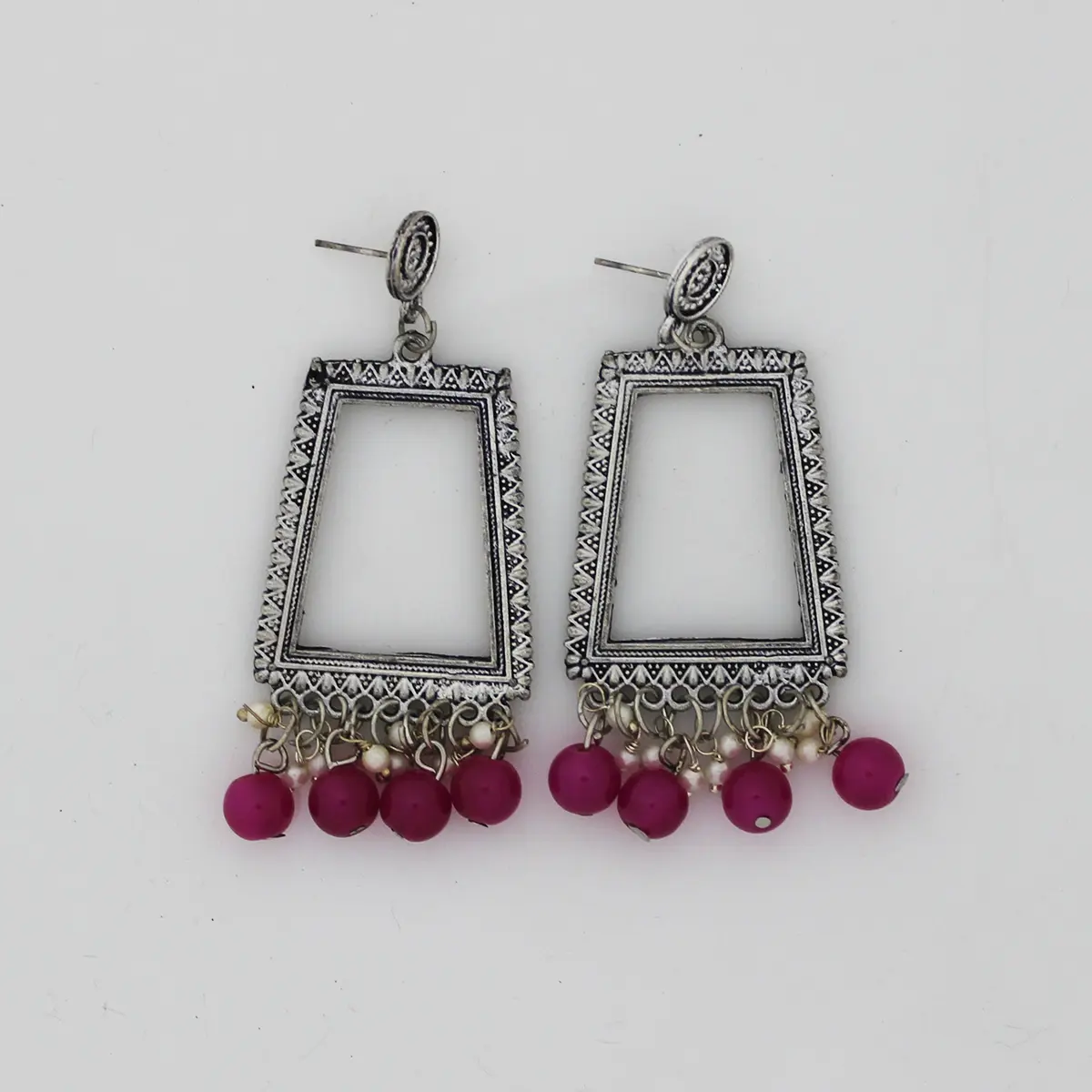 Artificial Silver Rectangle Jhumka Bezel With Pink Pearls - 1.3x1.8 Inch Pair for Resin Jewellery Making | JustKraft