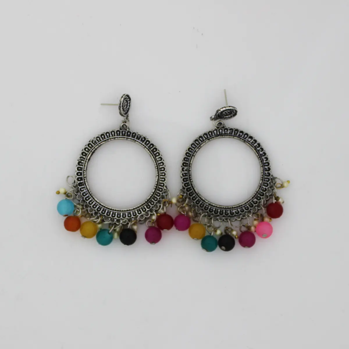 Artificial Silver Round Jhumka Bezel With Multicolor Pearls - 1.8 Inch Pair for Resin Jewellery Making | JustKraft