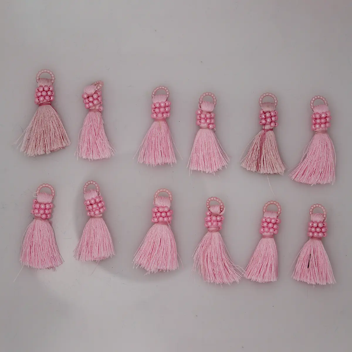 Beaded Thread Tassels - Baby Pink - 2 Inch | Pack Of 12 Decorative Craft Tassels