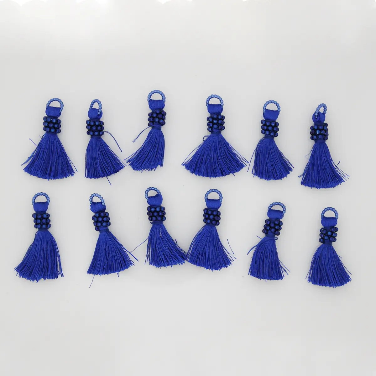 Beaded Thread Tassels - Dark Blue - 2 Inch | Pack Of 12 Decorative Craft Tassels