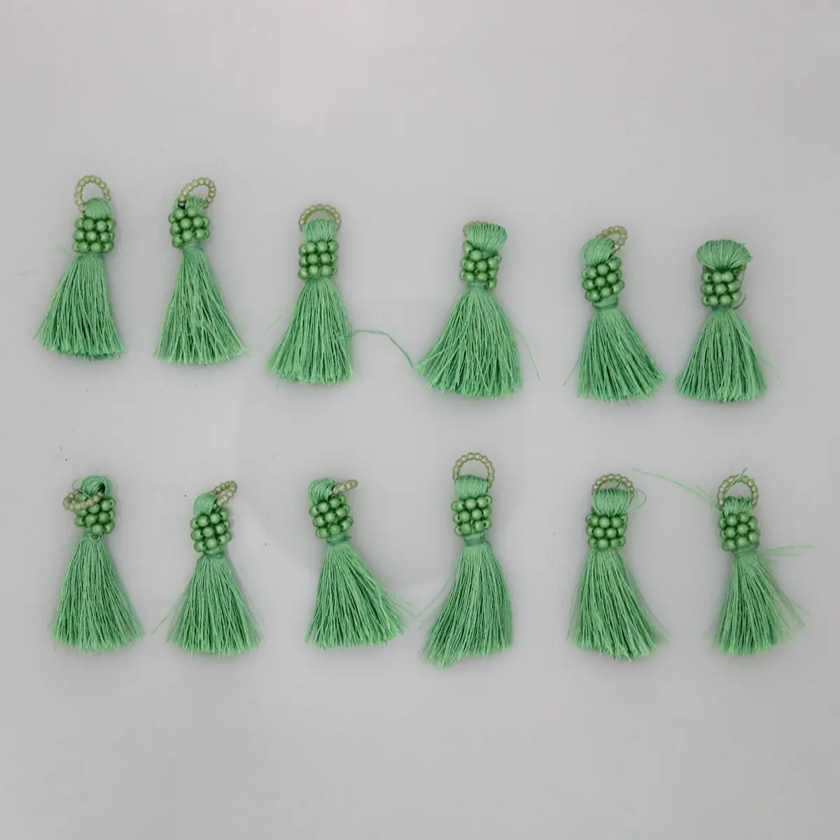 Beaded Thread Tassels - Light Green - 2 Inch | Pack Of 12 Decorative Craft Tassels