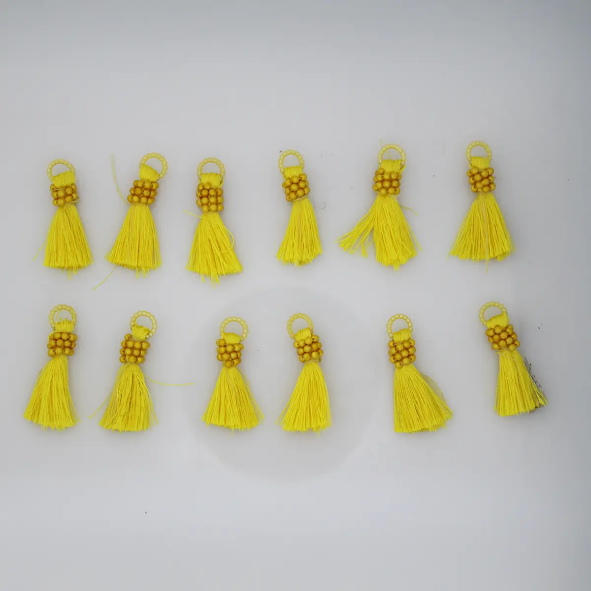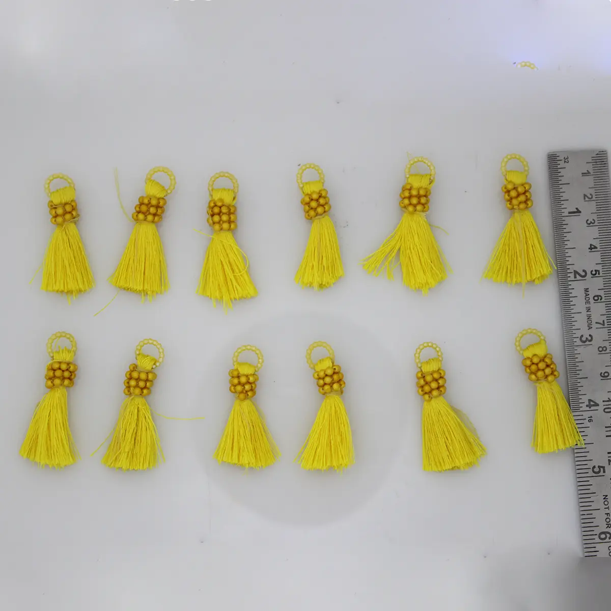 Beaded Thread Tassels - Light Yellow - 2 Inch | Pack Of 12 Decorative Craft Tassels