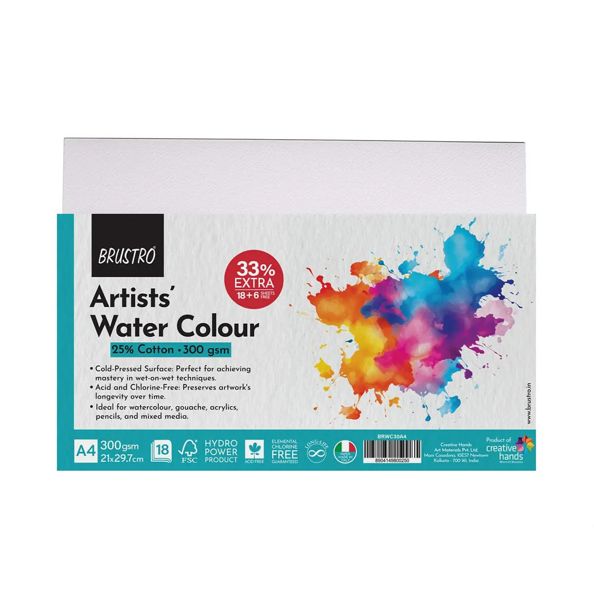 Brustro Artists Watercolour Paper Pad A4 300 GSM β 25% Cotton Cold Pressed Watercolor Paper (9 Sheets)