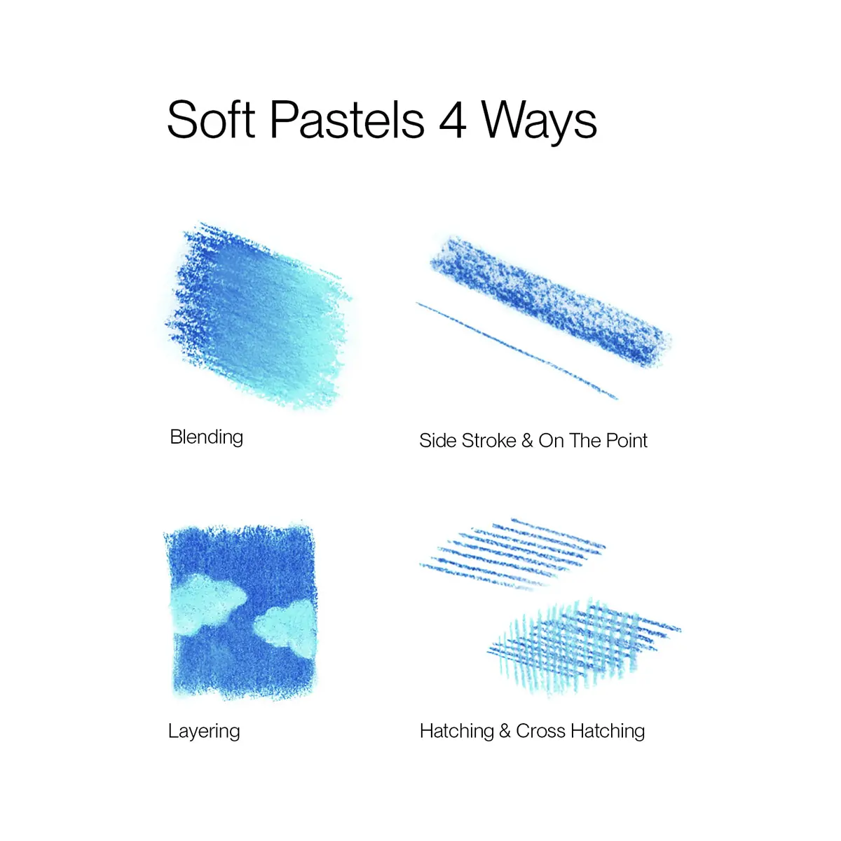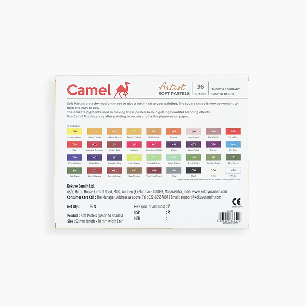 Camel Artist Soft pastels are rich, bright, and intermixable colours. Smooth and easy to apply. Ideal for color mixing, etching, shading, and creating a textured design.