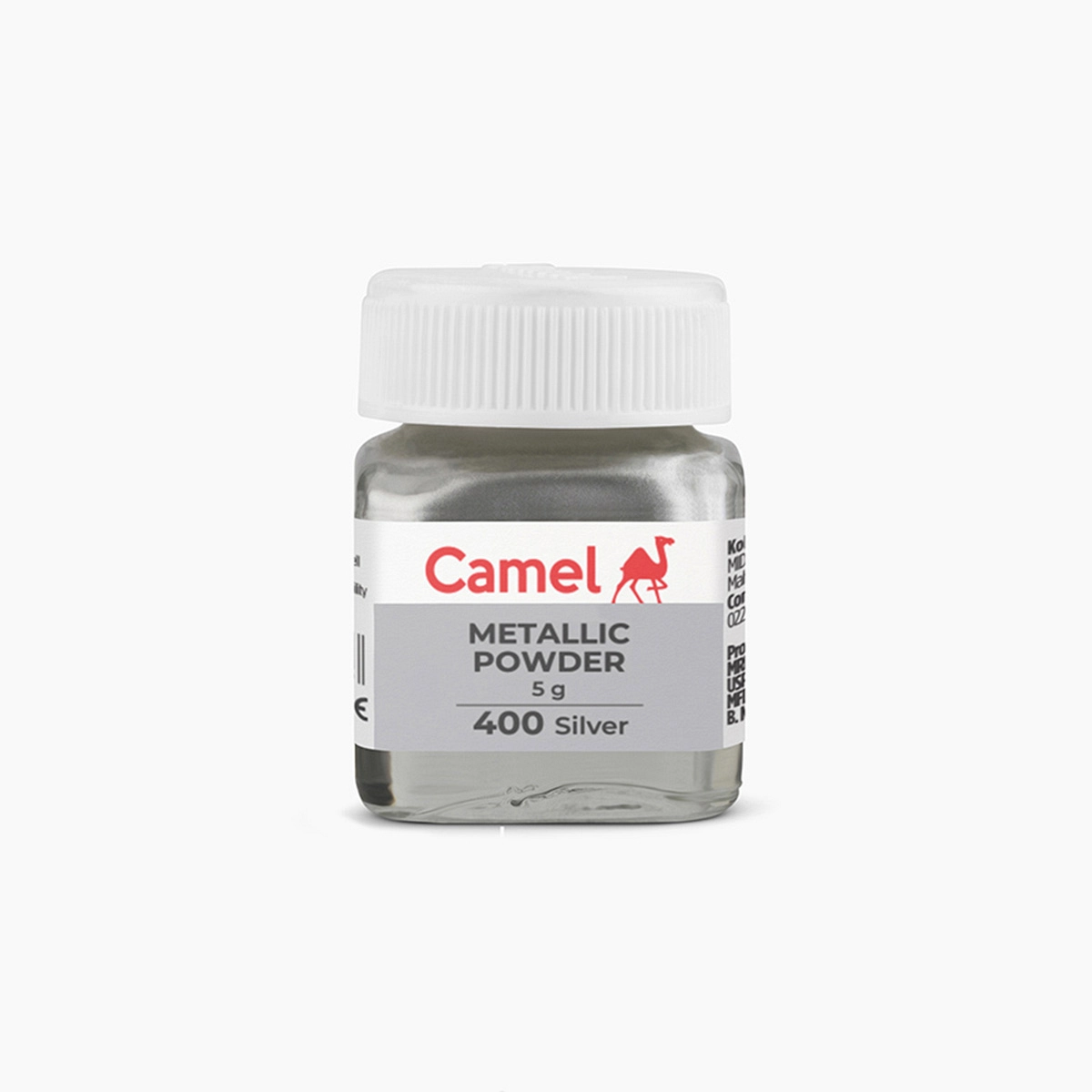 Bring a shimmering Silver finish to your crafts with Camel Metallic Powder. This 5g jar of high-grade pigment mixes easily with mediums like varnish, glue, resin, or paint.