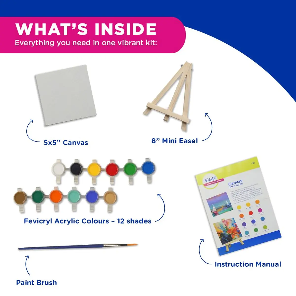 Fevicryl Canvas Painting Kit with Easel & 12 Acrylic Colours – DIY Canvas Art Paint Set for Beginners