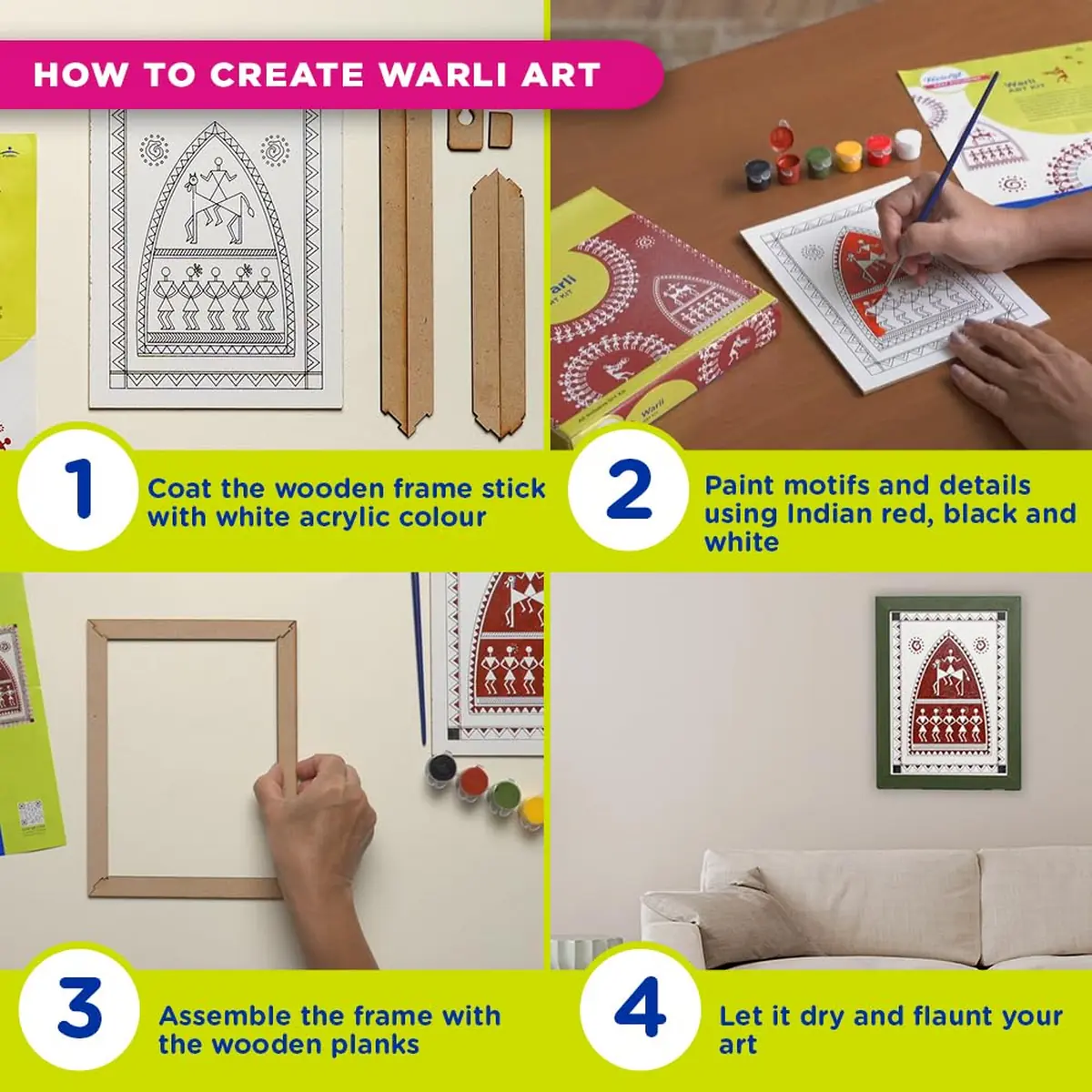 Create traditional Warli paintings for home décor, learn Indian tribal art techniques, complete school art projects, enjoy relaxing hobby painting sessions or gift a creative craft experience to art lovers.
