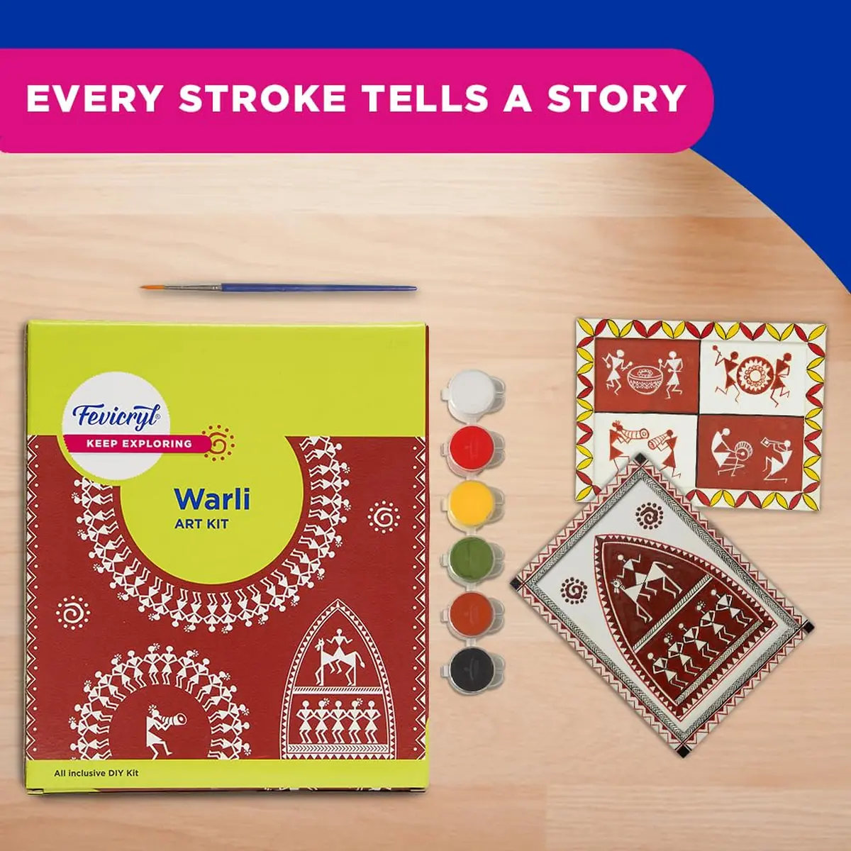 Fevicryl Warli Art Kit with Wooden Plank & Acrylic Colours – DIY Indian Tribal Painting Craft Kit for Beginners