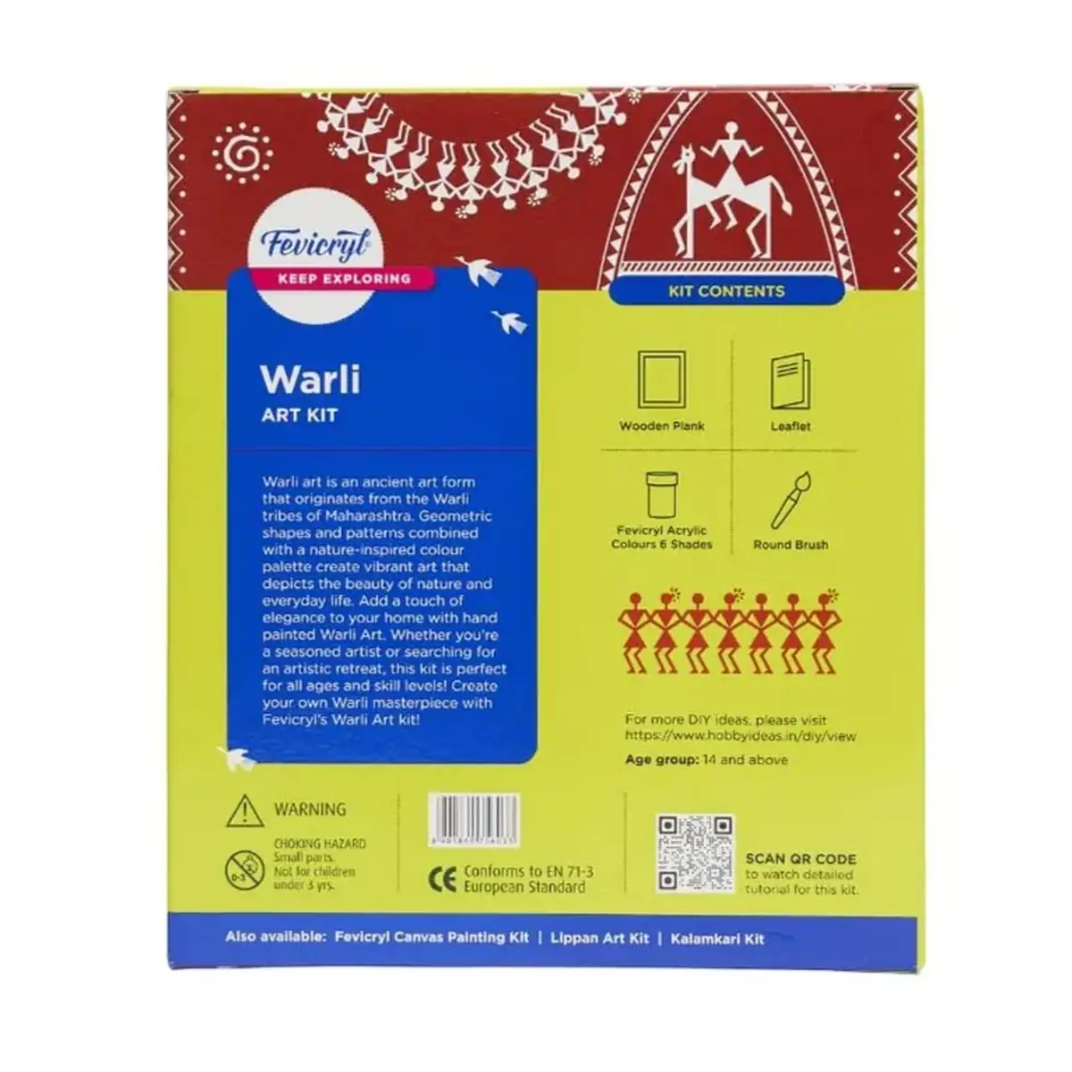 The Fevicryl Warli Art Kit lets you explore one of India’s most iconic tribal art forms through a simple DIY painting experience. Inspired by the traditional Warli art of Maharashtra, this kit includes a wooden plank, acrylic colours and a brush so you can create your own handcrafted folk artwork at home.