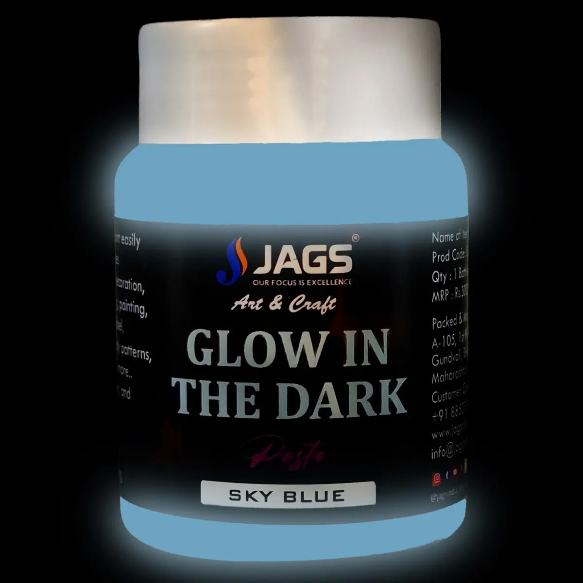 This ready-to-use glow paste spreads smoothly on multiple surfaces, making it beginner friendly for art and craft applications. The thick consistency allows controlled application while ensuring strong glow performance. Durable formulation supports repeated decorative use without fading quickly.