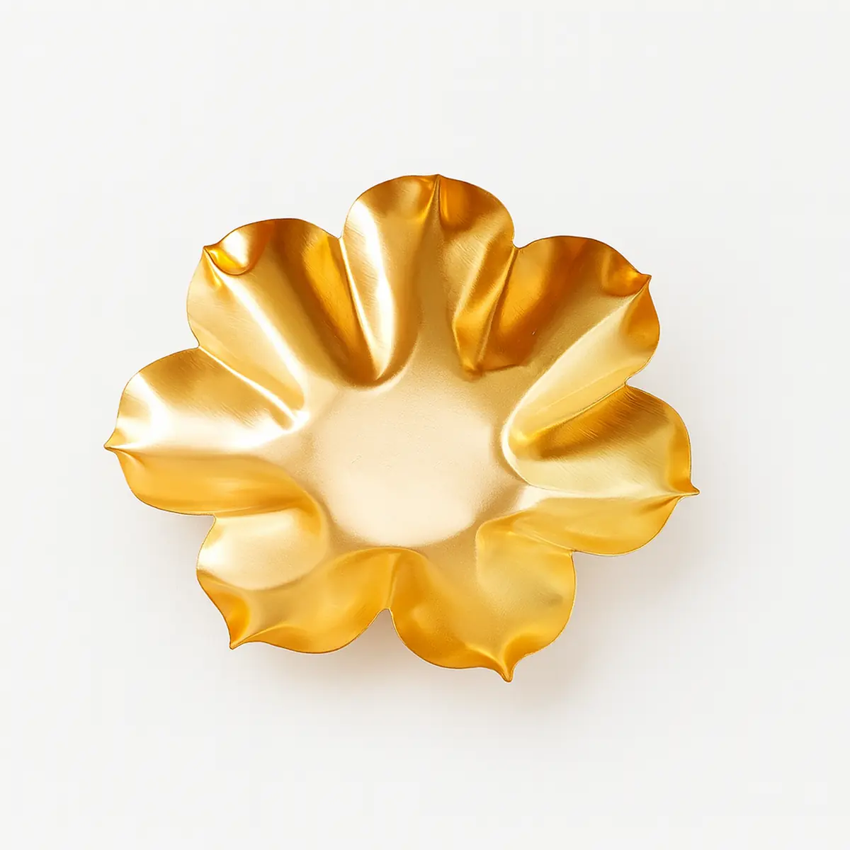 1. Elegant Floral Shape - Beautiful golden flower urli perfect for pouring and setting wax candles.