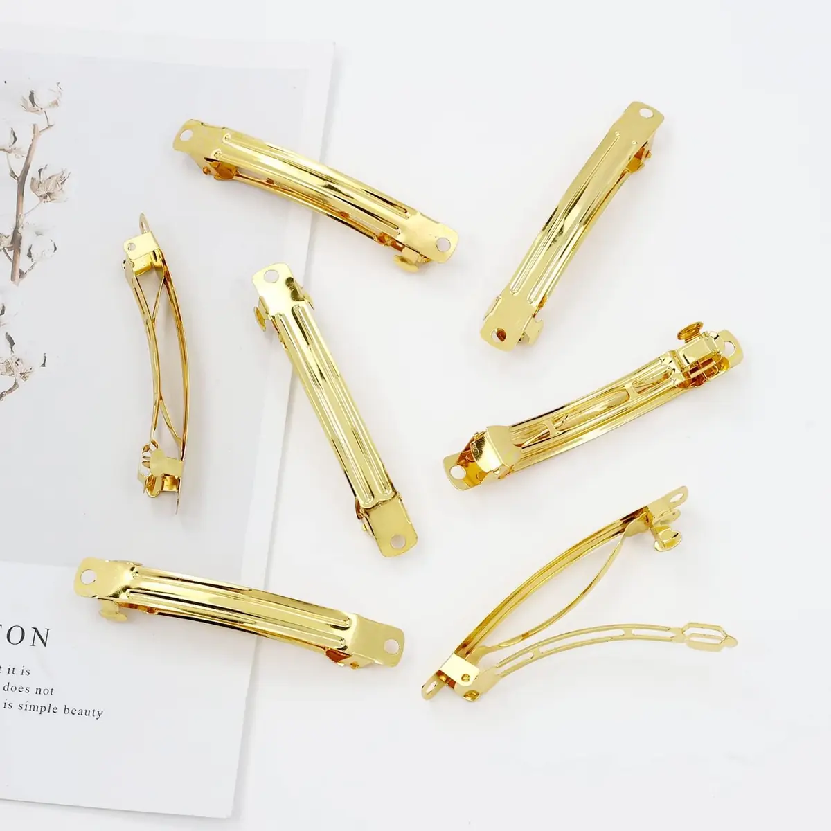 Hair Clips Blank Clasps 70mm - Gold - Pack of 6 for DIY Hair Accessories