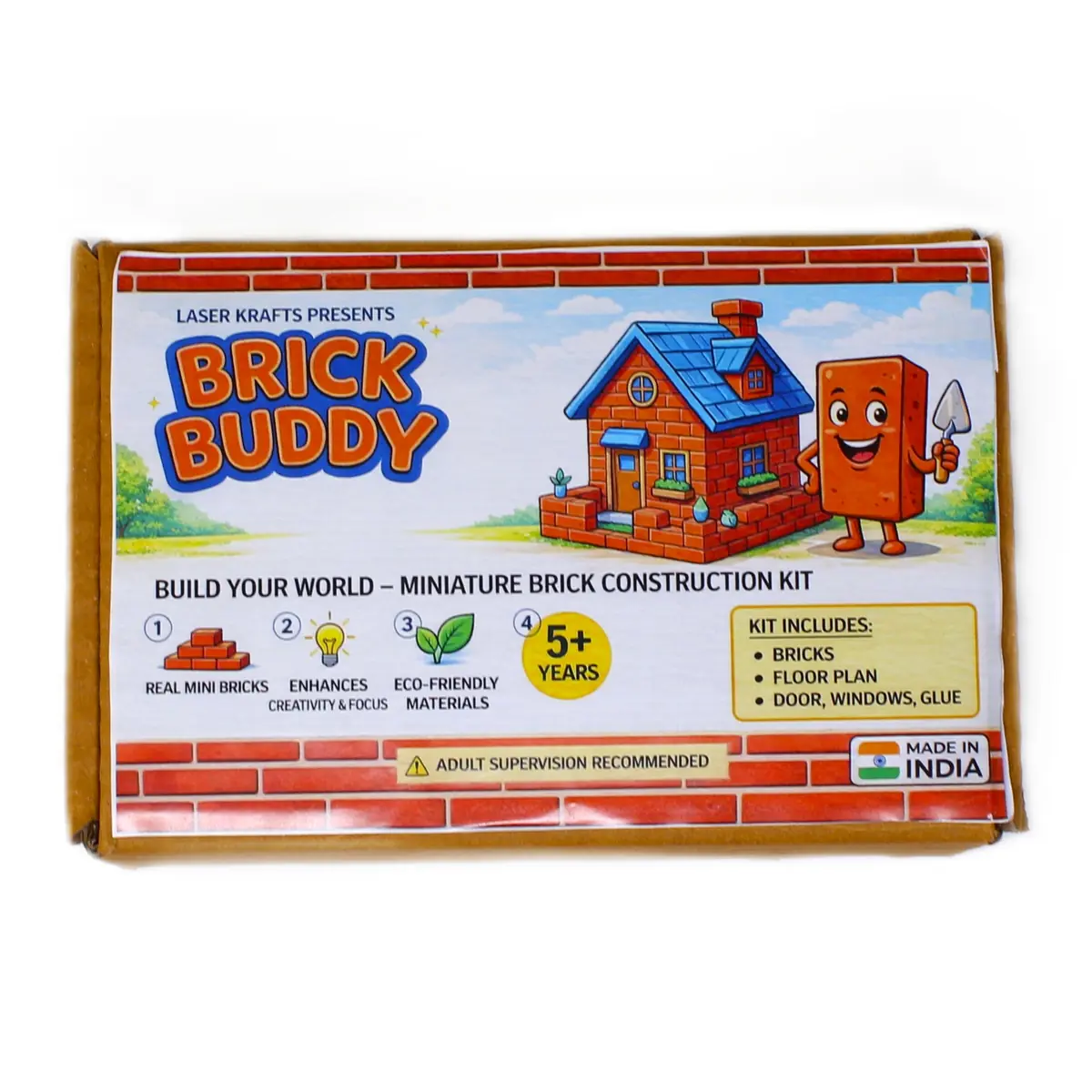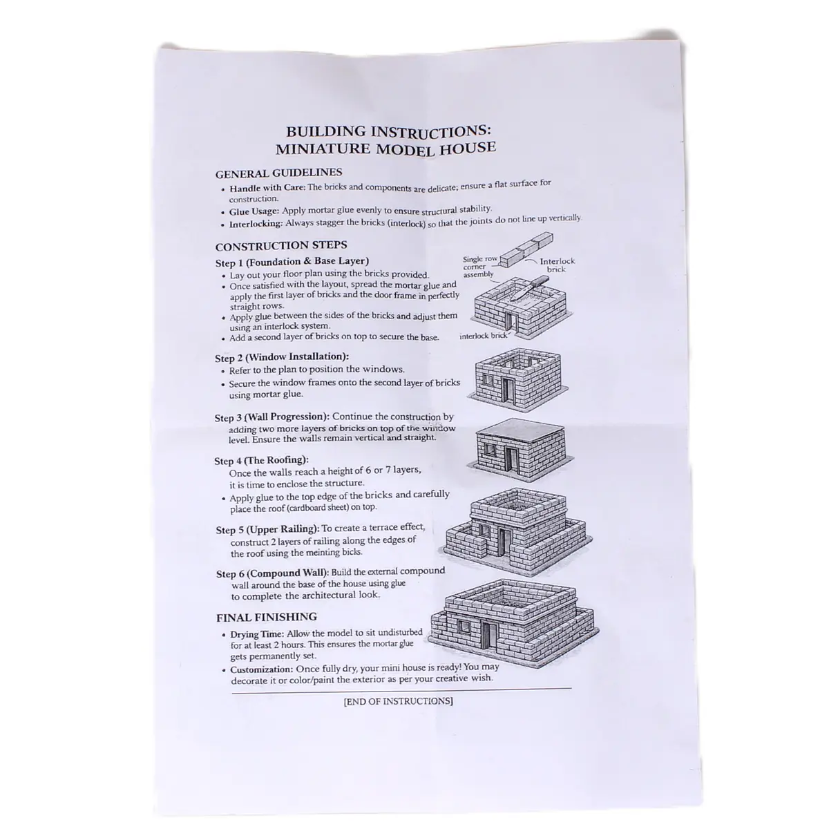 Unlike plastic blocks, this kit includes real mini bricks for an authentic building experience. It also comes with doors, windows, and glue to complete a realistic miniature house model.
