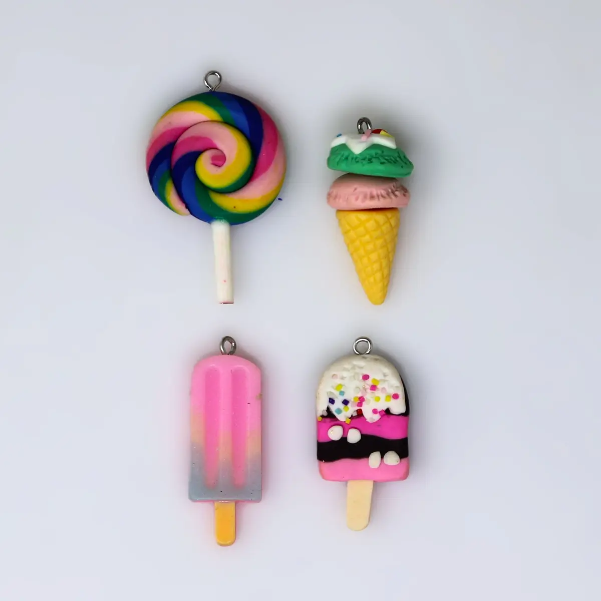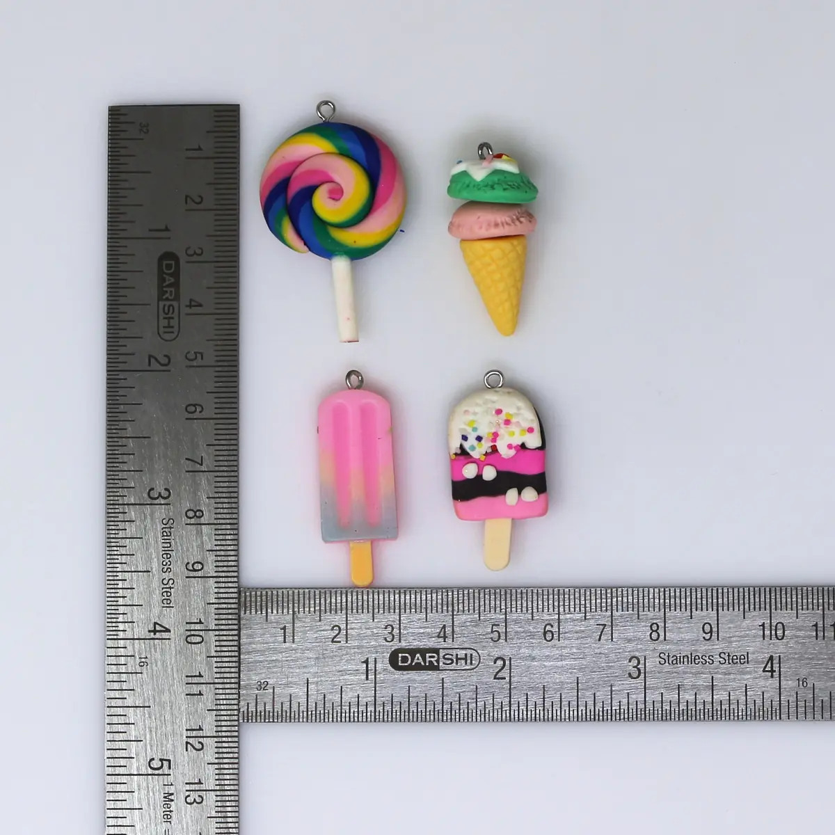 Miniature Dessert Charms Set of 4 (3โ5cm) โ Ice Cream Candy Mini Charms for Jewelry & DIY Crafts