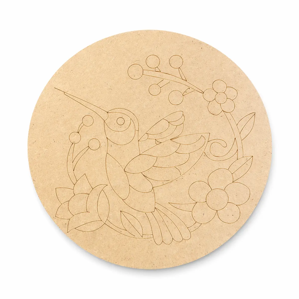 Premarked MDF Round Base 12 Inch 3.3mm Humming Bird β Laser Engraved Board for Mandala, Lippan & DIY Art