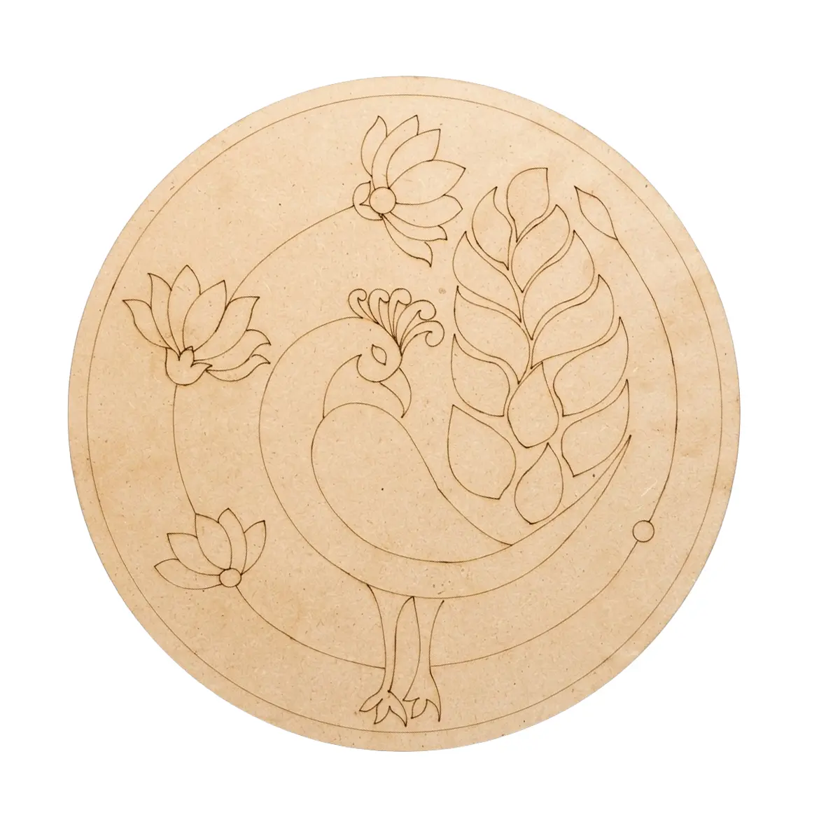 Premarked MDF Round Base 12 Inch 3.3mm Peacock Lotus β Laser Engraved Board for Mandala, Lippan & DIY Art