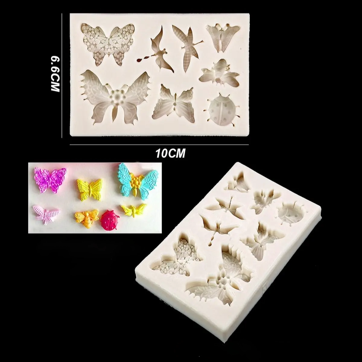 Silicone Butterfly & Insect Mold 10cm ร 6.6cm - Multi-Cavity Mould for Candle Making - Resin Casting - and Cake Fondant - Model DYF464