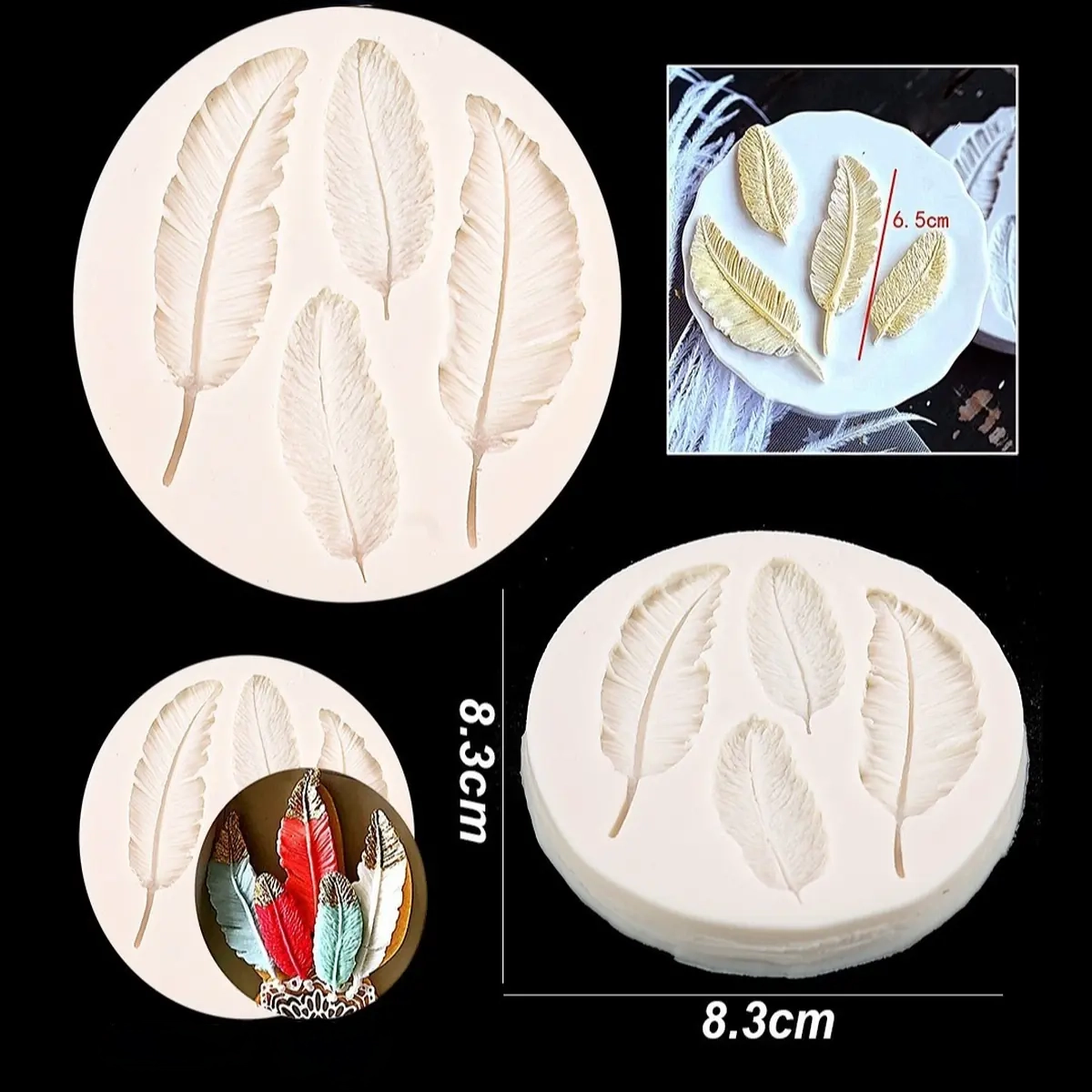 This silicone feather mold features multiple detailed feather cavities designed for creating elegant decorative elements. The fine texture of the feathers allows you to produce realistic craft pieces for a variety of DIY projects.