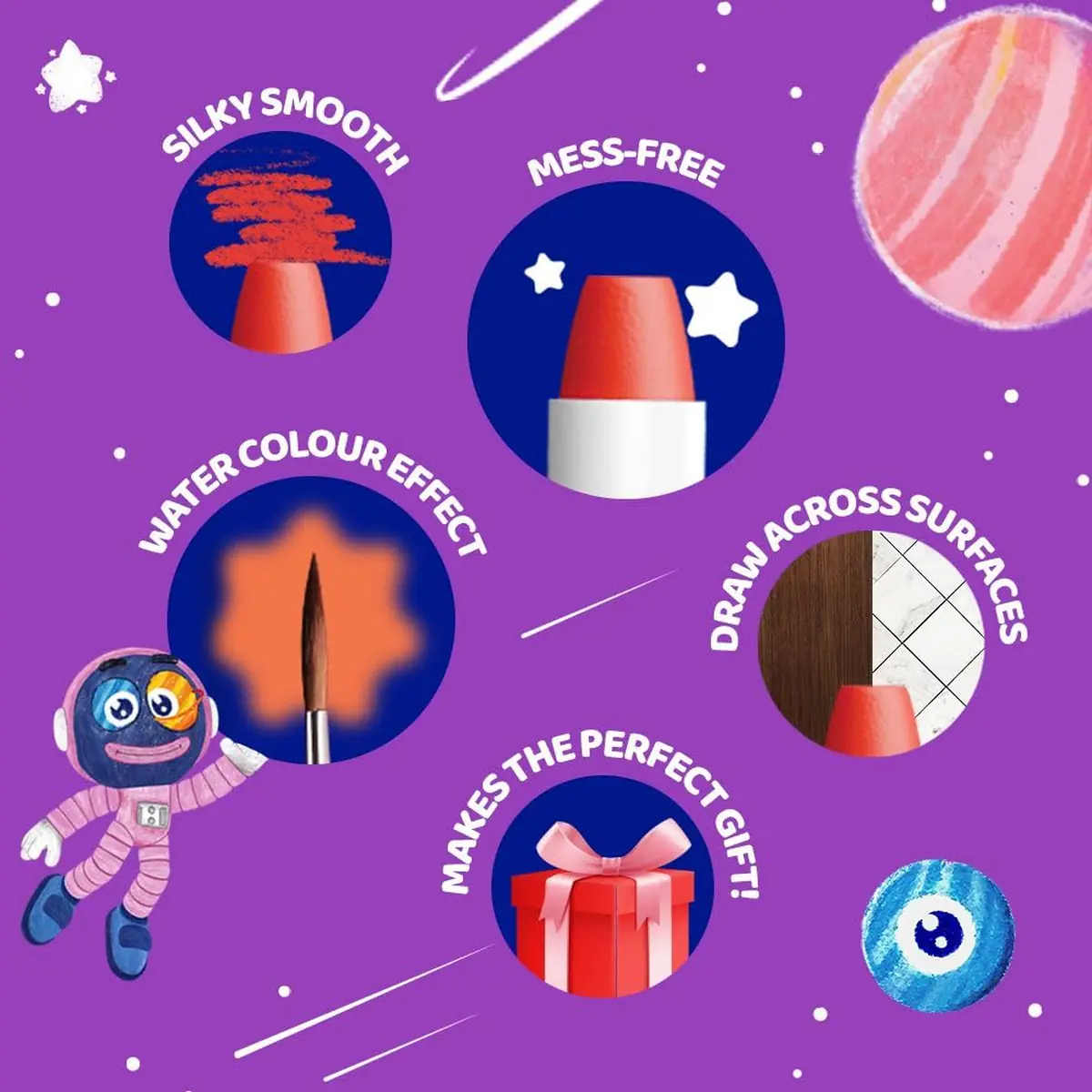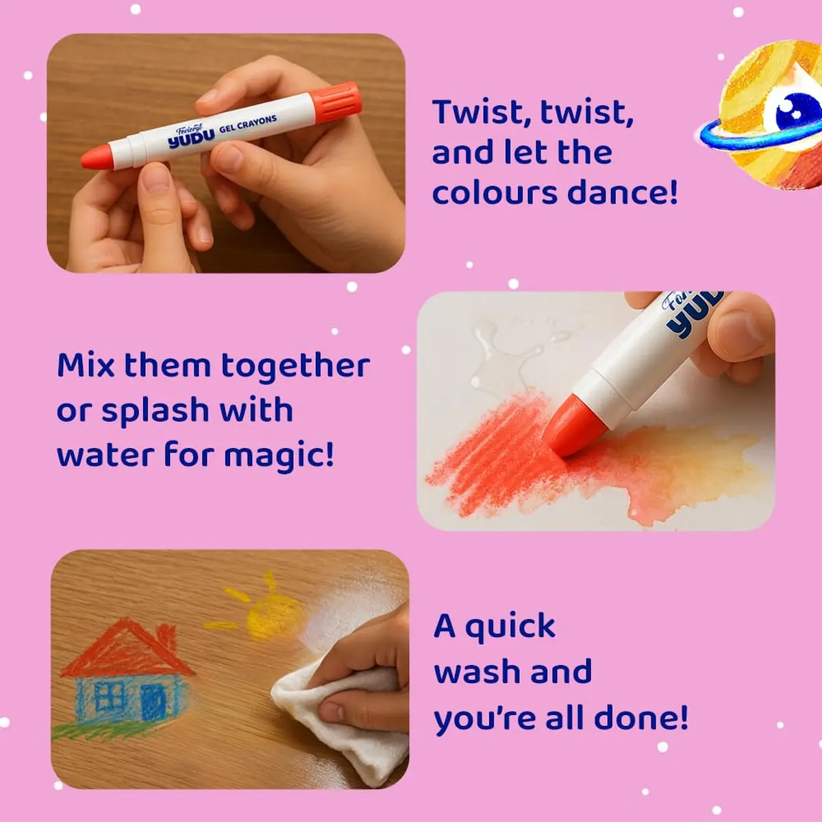 Make every stroke vibrant with these gel crayons for kids, designed for ultra-smooth application and rich color output. These twistable crayons glide effortlessly on paper, making coloring easy and enjoyable for both kids and adults.